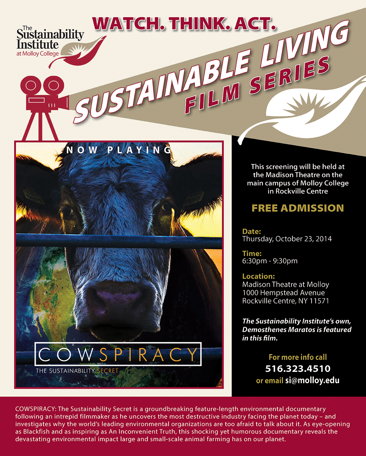 Beginning in 2010, the Sustainability Institute at Molloy University hosted the Sustainable Living Film Series, screening documentaries on environmental and ethical issues. The series drew up to 200 attendees, partnered with local nonprofits, and built connections between Long Island’s social change community and the public.