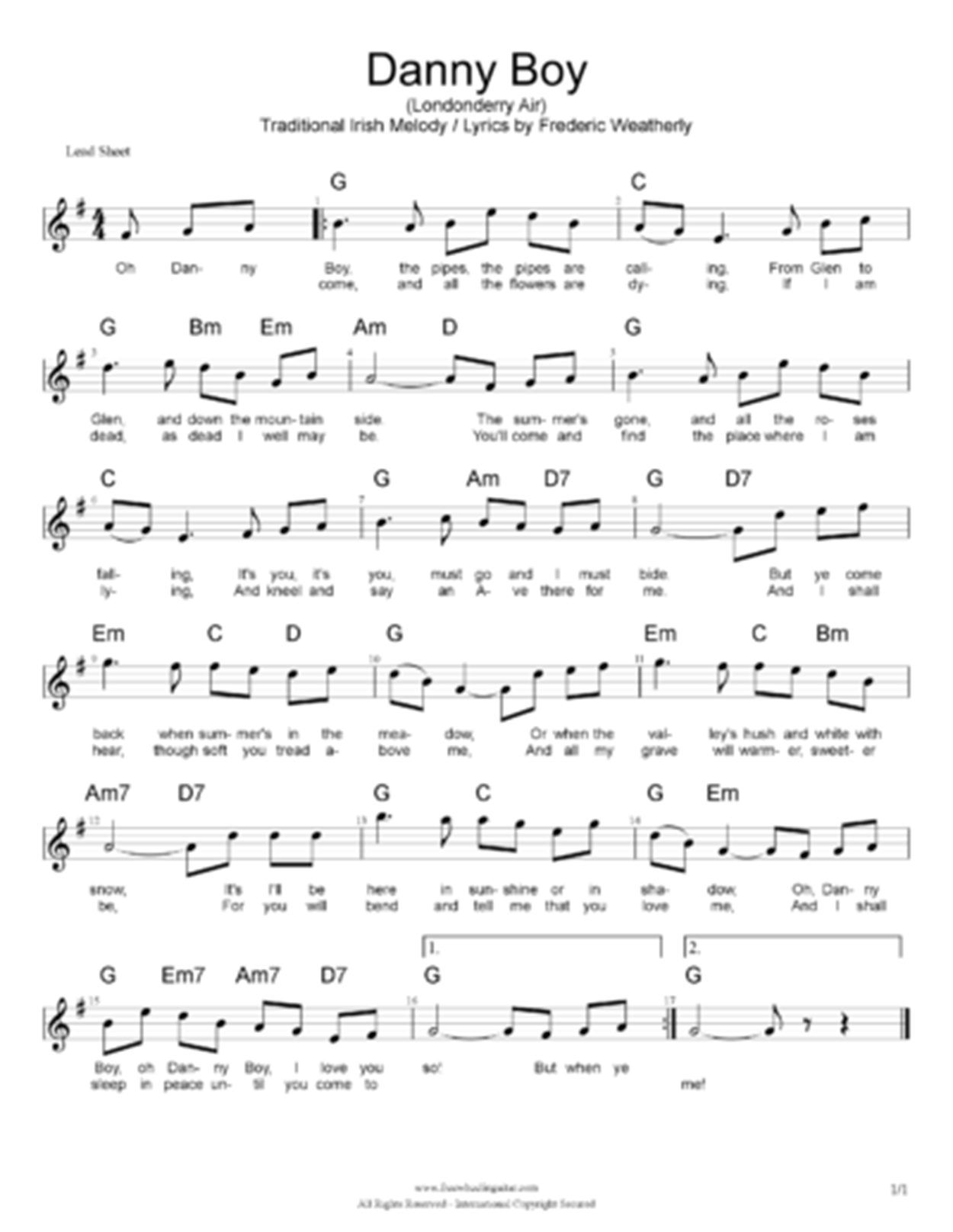 Here is an example of a lead sheet with chords and melody: