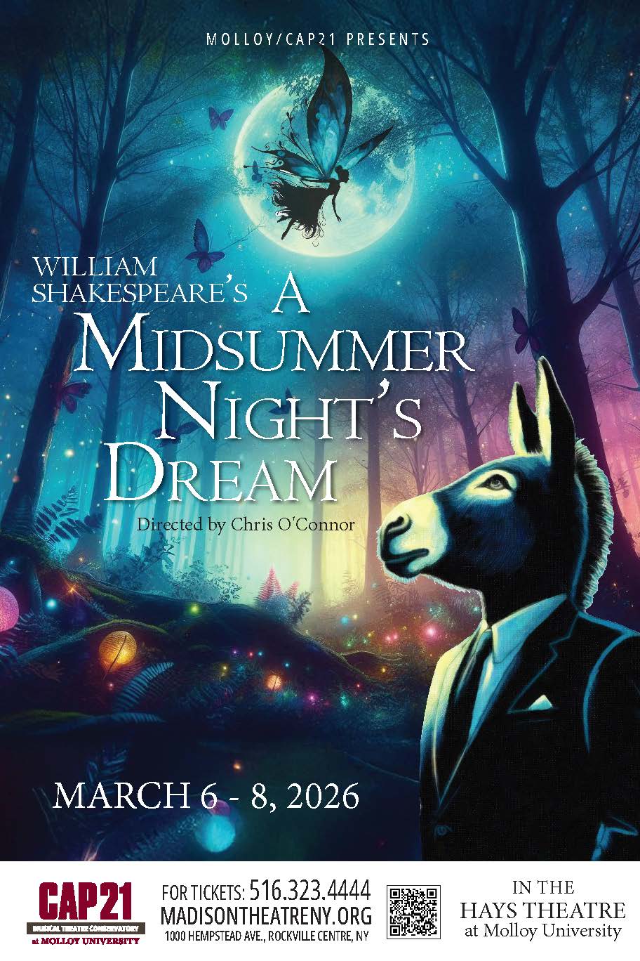 Each year, Molloy/CAP21 produces multiple mainstage productions to showcase our talented undergraduate students and to provide them with practical opportunities that focus on the process of creating live theatre.